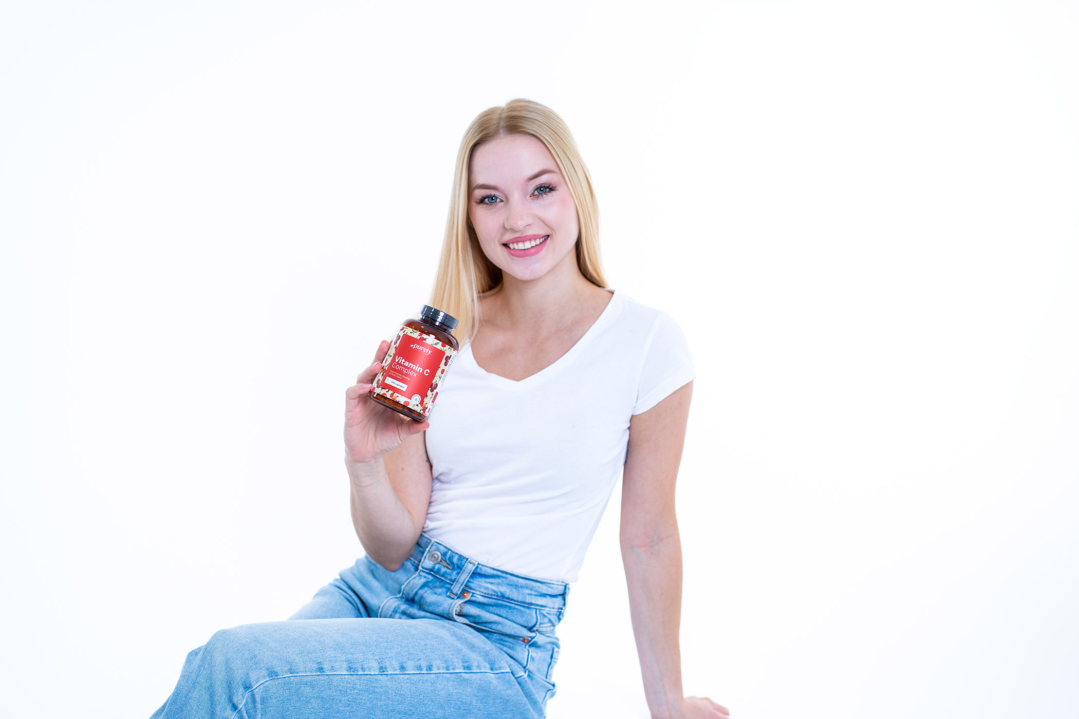 Ingrediente: L-ascorbat de calciu, extract de fructe de acerola 15:1 (Malpighia glabra; 25 % vitamina C), extract de fructe de camu camu 5:1 (Myrciaria dubia; 30 % vitamina C), amidon de cartofi, extract de fructe de măceșe 20:1 (Rosa canina; 45 % vitamina C), hidroxipropilmetil celuloză (HPMC; învelișul vegetal al capsulei).