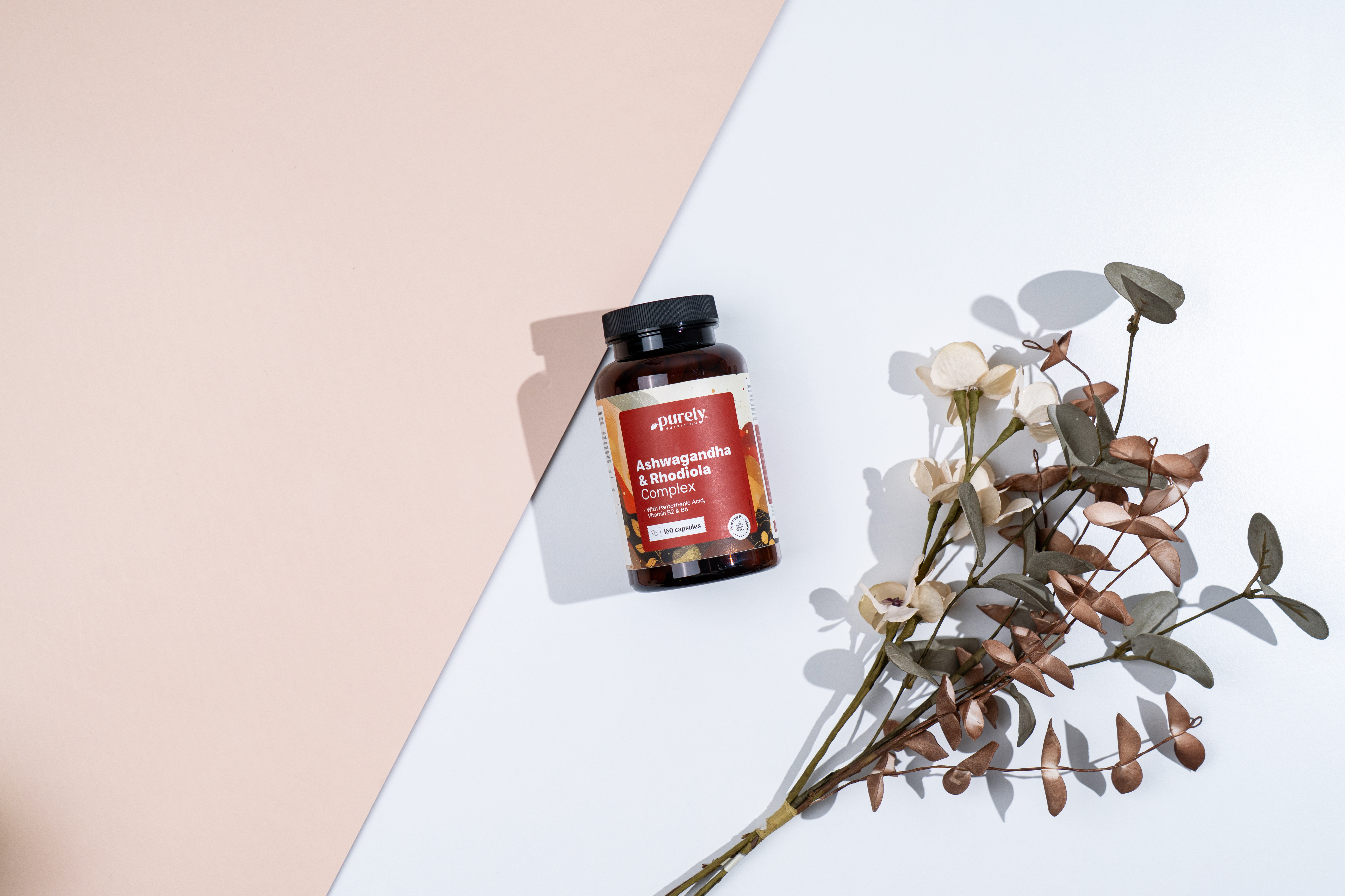 Ingrediente: extract uscat de ashwagandha KSM-66® (Withania somnifera; rădăcină, 5 % vitanolide), extract uscat de rhodiola (Rhodiola rosea; rădăcină, 1 % salidrozide), hidroxipropil metilceluloză (HPMC; înveliș vegetal al capsulei), extract uscat de bambus (Bambusa bambos; lăstari tineri, 85 % dioxid de siliciu), celuloză (agent de umplere), săruri de magneziu ale acizilor grași (agent antiaglomerant), D-pantotenat de calciu (acid pantotenic), riboflavină-5'-fosfat (vitamina B2), clorhidrat de piridoxină (vitamina B6).